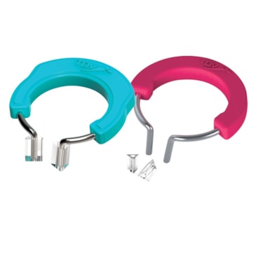 Embalagem com 25 unidades sortidas; 1 Grampo Hard; 4 Protetores de silicone triangulares.