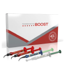 Embalagem com 1 seringa de Opalescence Boost 40%; 1 seringa de Opaldam Green; 5 moldeiras superiores e inferiores pré-carregadas